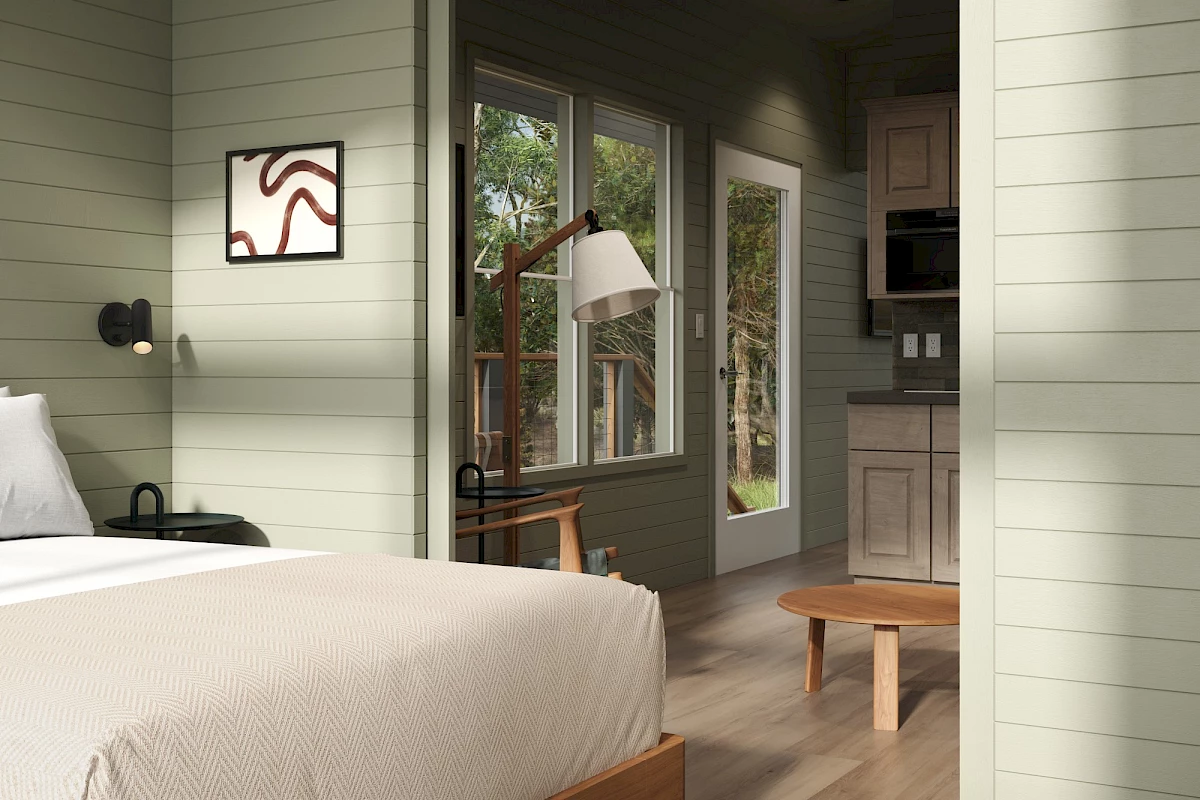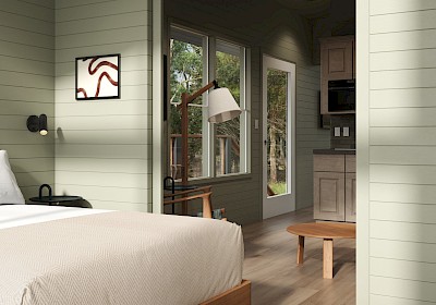 The property will feature 104 cozy cabins and 14 guest rooms, along with a 2,508-square-foot conference center, an inviting onsite restaurant, and a resort-style pool, hot tub, saunas, and cold plunge. Weekly onsite events and curated programming keep the good vibes flowing, while the surrounding wilderness offers endless opportunities to roam, recharge, and rediscover what matters most.