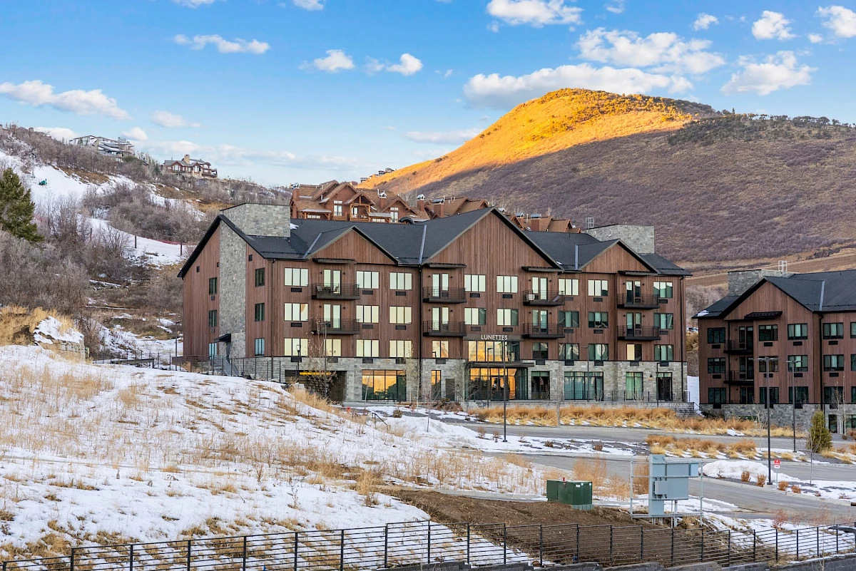 Pioche Village is a newly developed mountain property in the Deer Valley East Village area of Park City, Utah, offering modern condo-style residences and ski-in/ski-out access via the nearby Jordanelle Express Gondola into Deer Valley Resort. It features a mix of studios, one- and two-bed units with amenities like fitness areas, hot tubs, game rooms, and mountain views. Located near Jordanelle State Park and reservoir, the property provides convenient access to year-round outdoor activities including skiing, hiking, and biking.